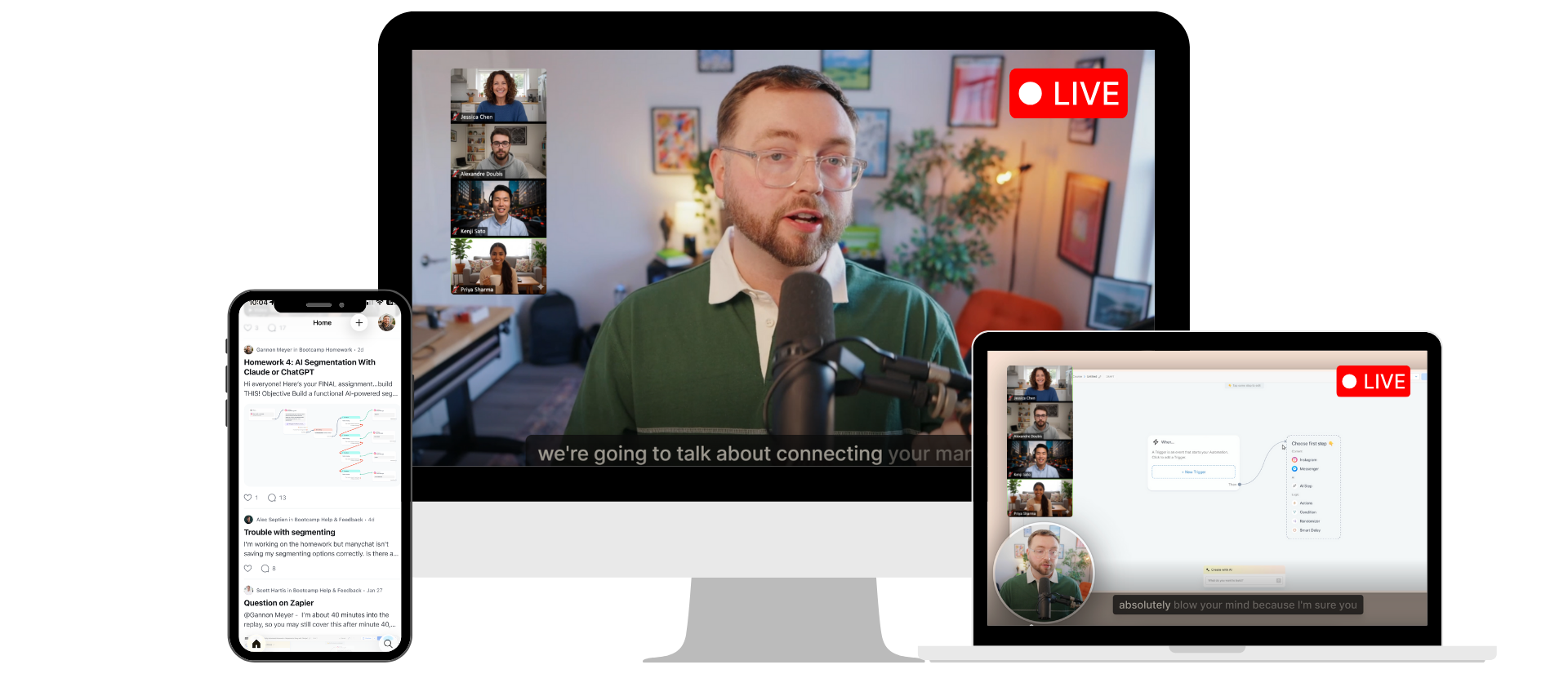 - 3-Week Live Bootcamp – hands-on training to build, test, and launch your full Manychat automation system ($1,997 value)